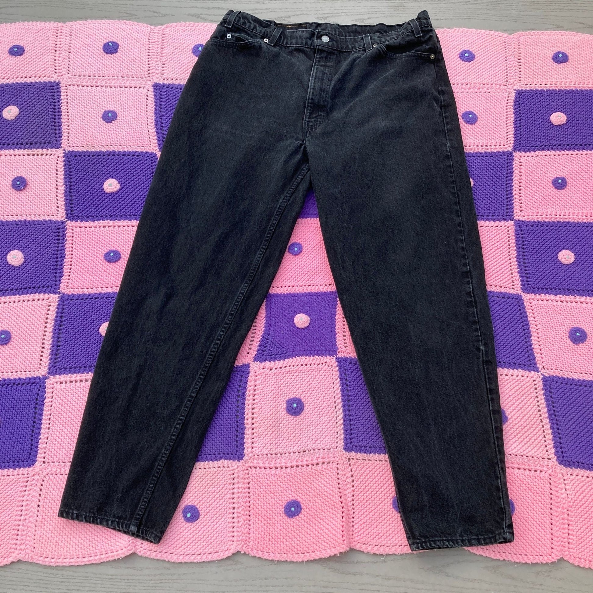 Levis 560 orange tab vintage high rise jeans. Black rinse, 100% cotton denim, zipper fly and high waisted. Decade is 90s or earlier. Some light fading, please see the photos. Would best fit a 38”-40” waist, but please see the measurements to ensure a perfect fit. Freshly laundered. Tag size is a 36 x 30 . Freshly laundered. Here to help if you have any questions.