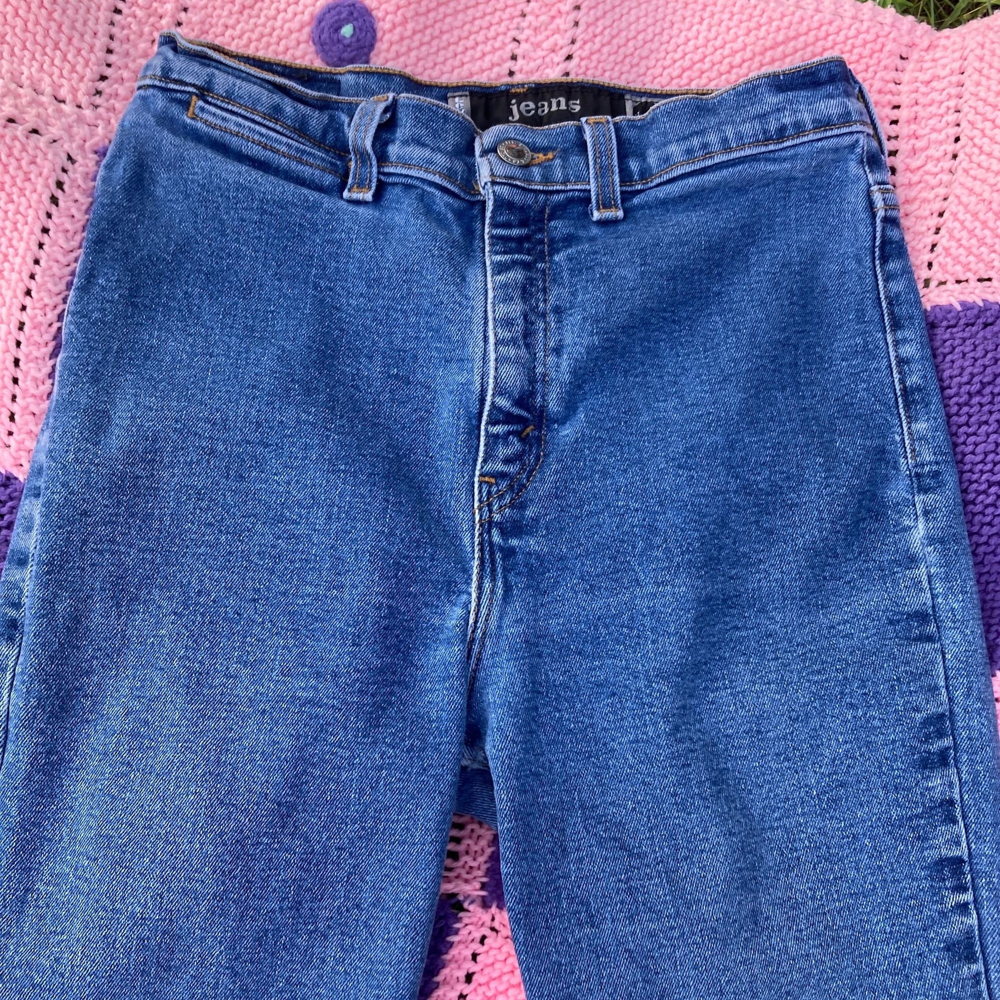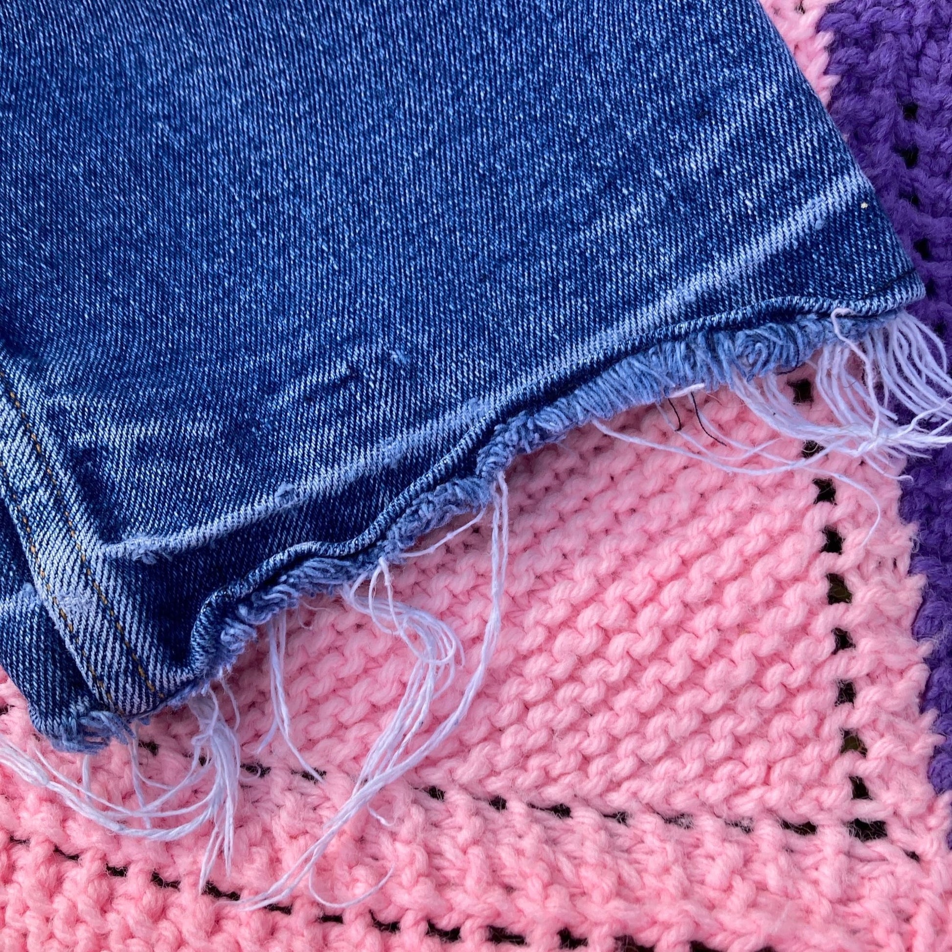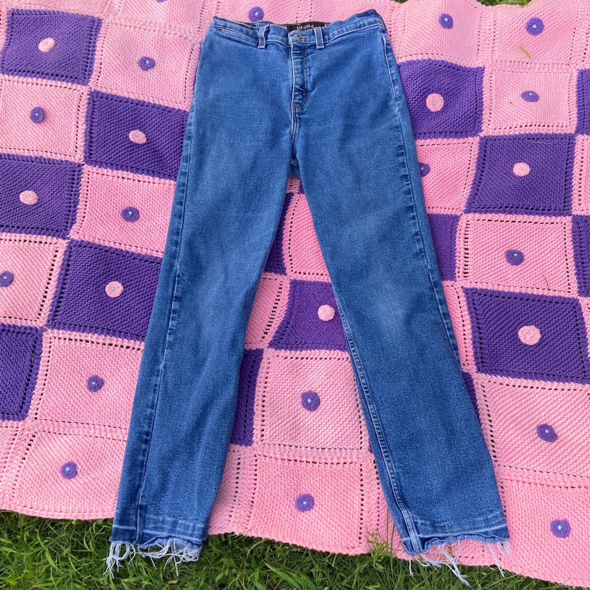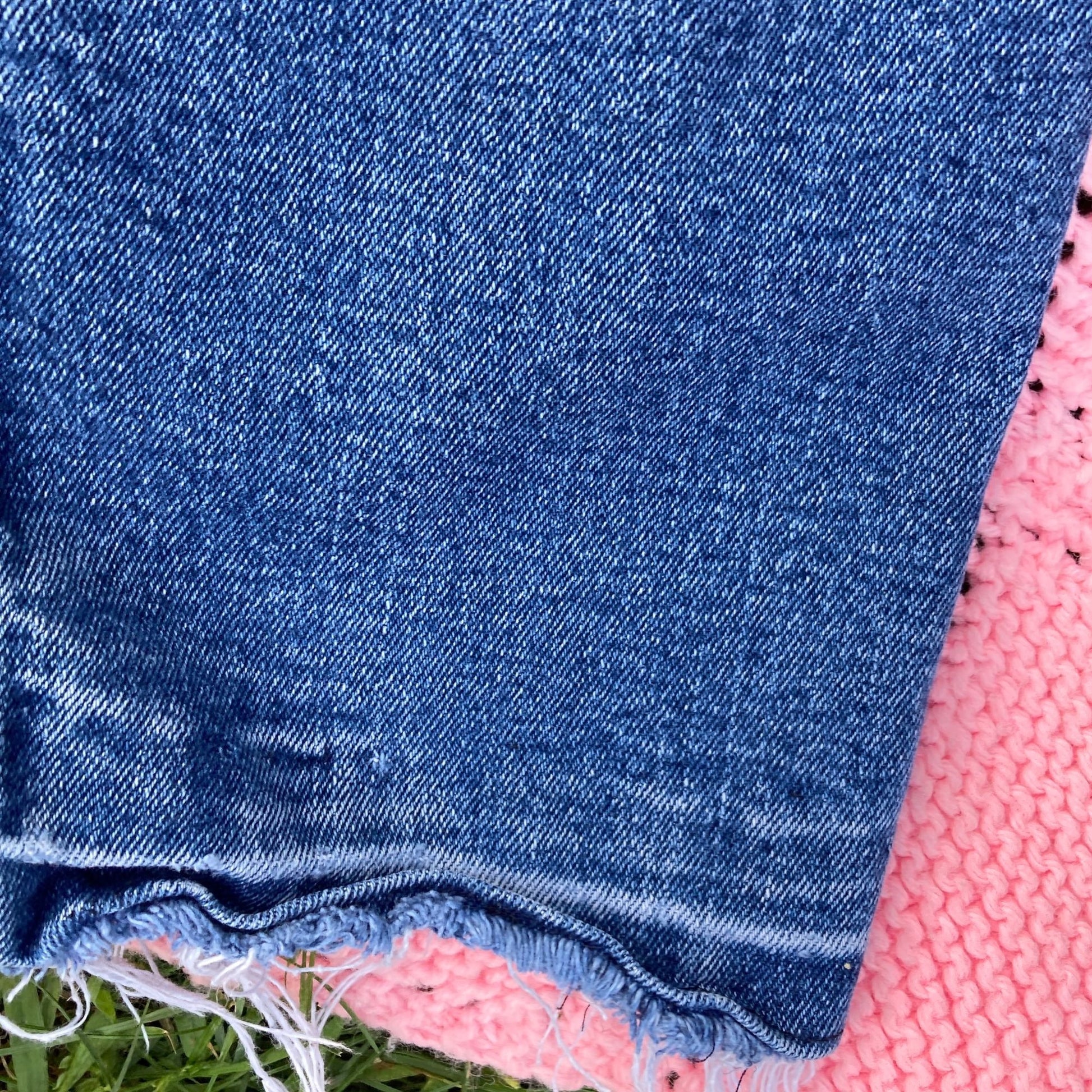 Levis vintage high waist tapered jeans. Dark - medium wash. Worn in, soft, intense fraying at the ankles. Cotton blend with some stretch. Would best fit a M . Original size is a 11 Jr. M, Made in USA, levis Silvertab line.