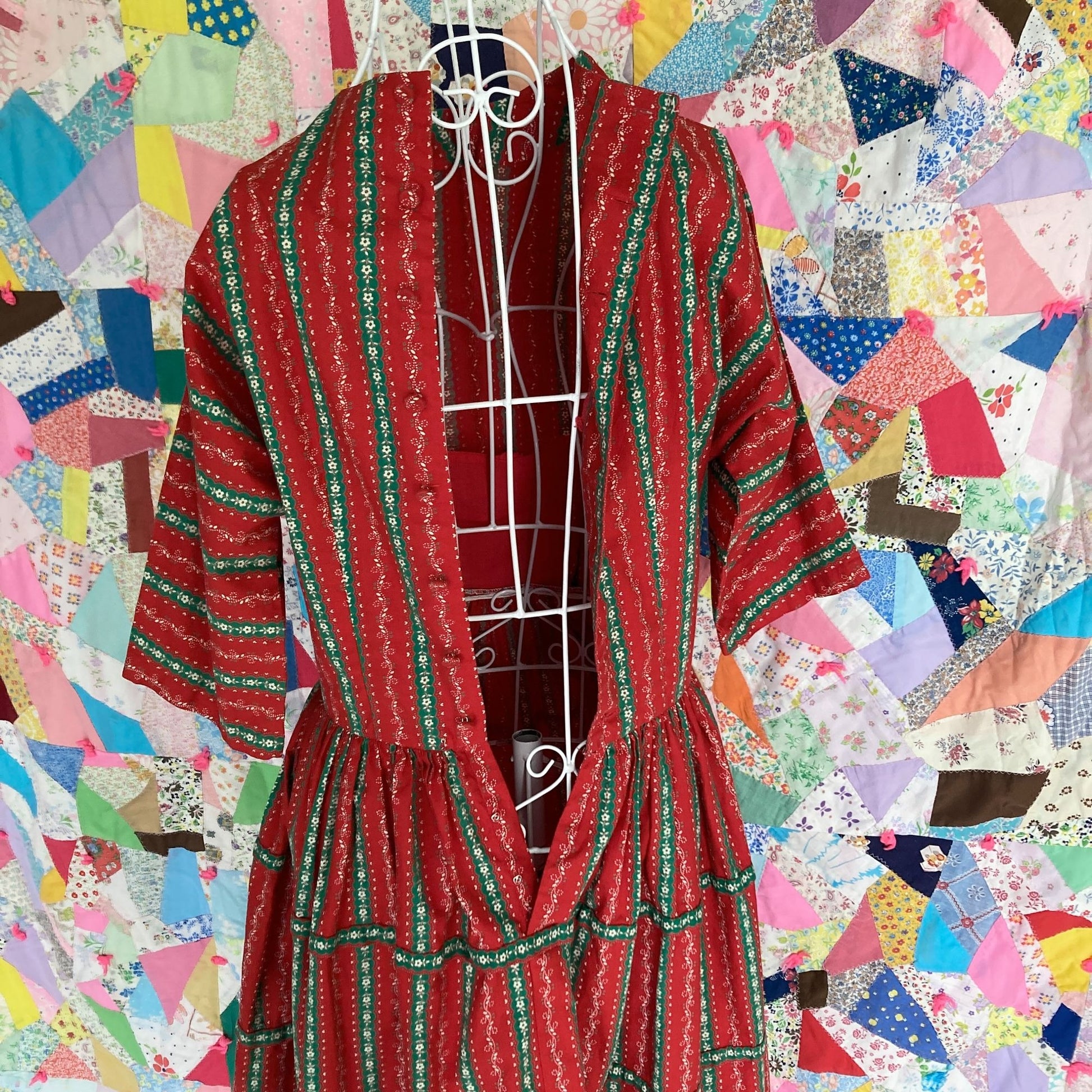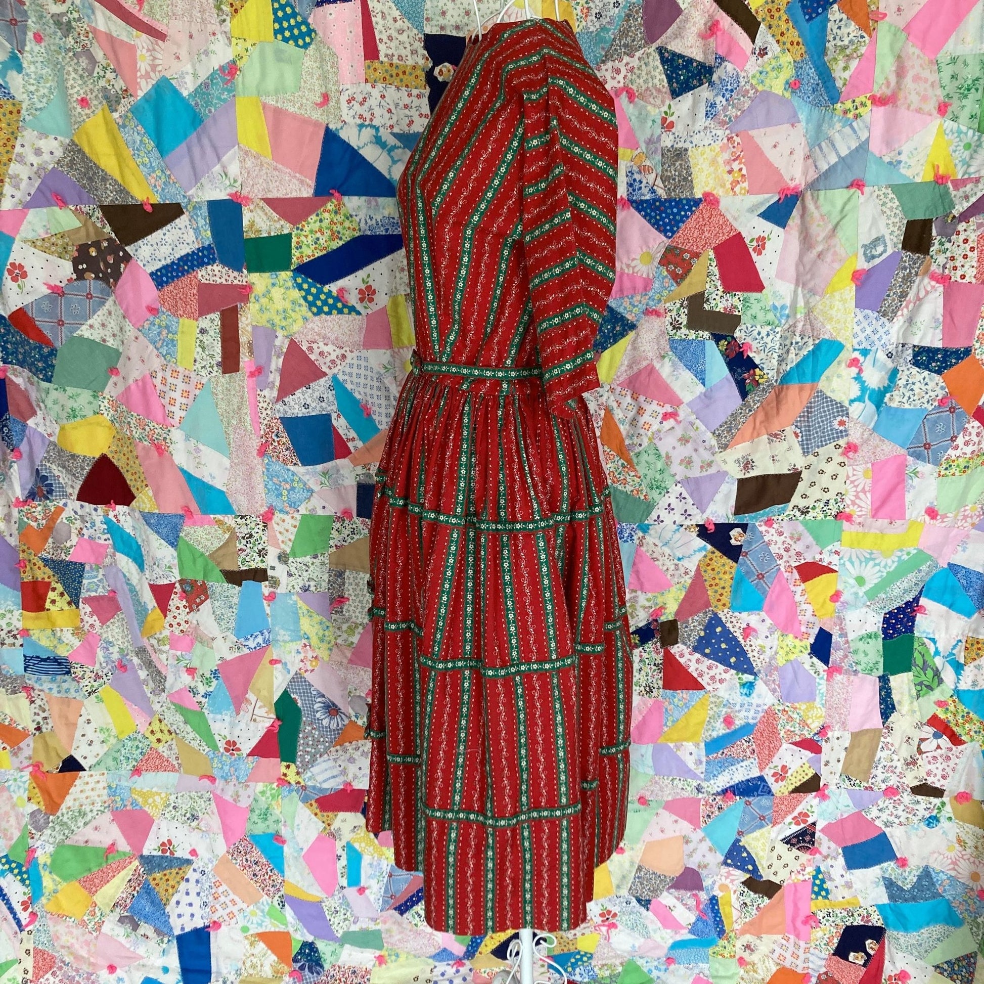 vintage 50s dress red green Lanz Originals | XS-S |1950s holiday christmas bow floral heart