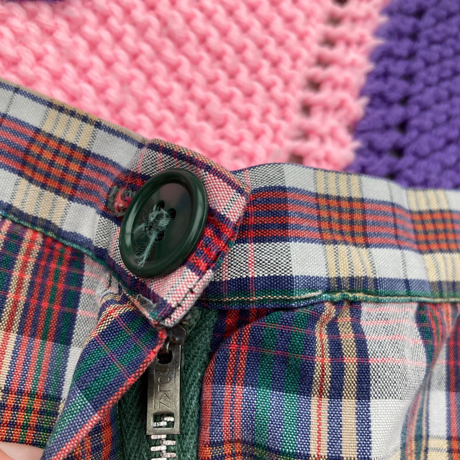 vintage 60s high waisted shorts 1960s madras plaid maroon green tan XS-S