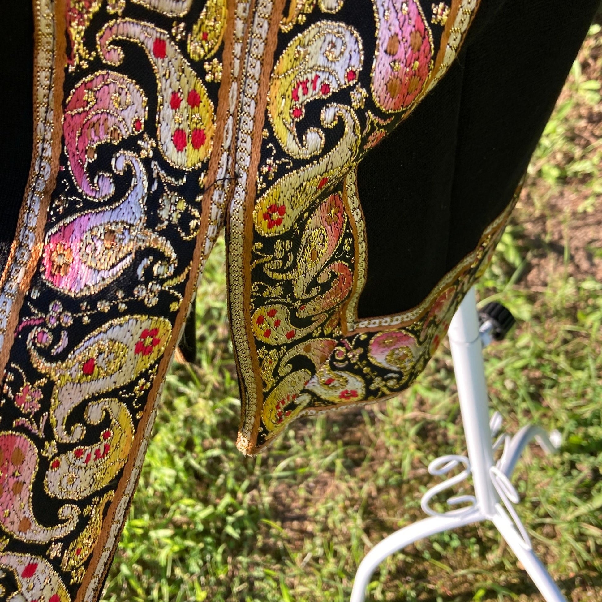 Vintage 60s shift dress black gold |S - M| 1960s jacquard paisley