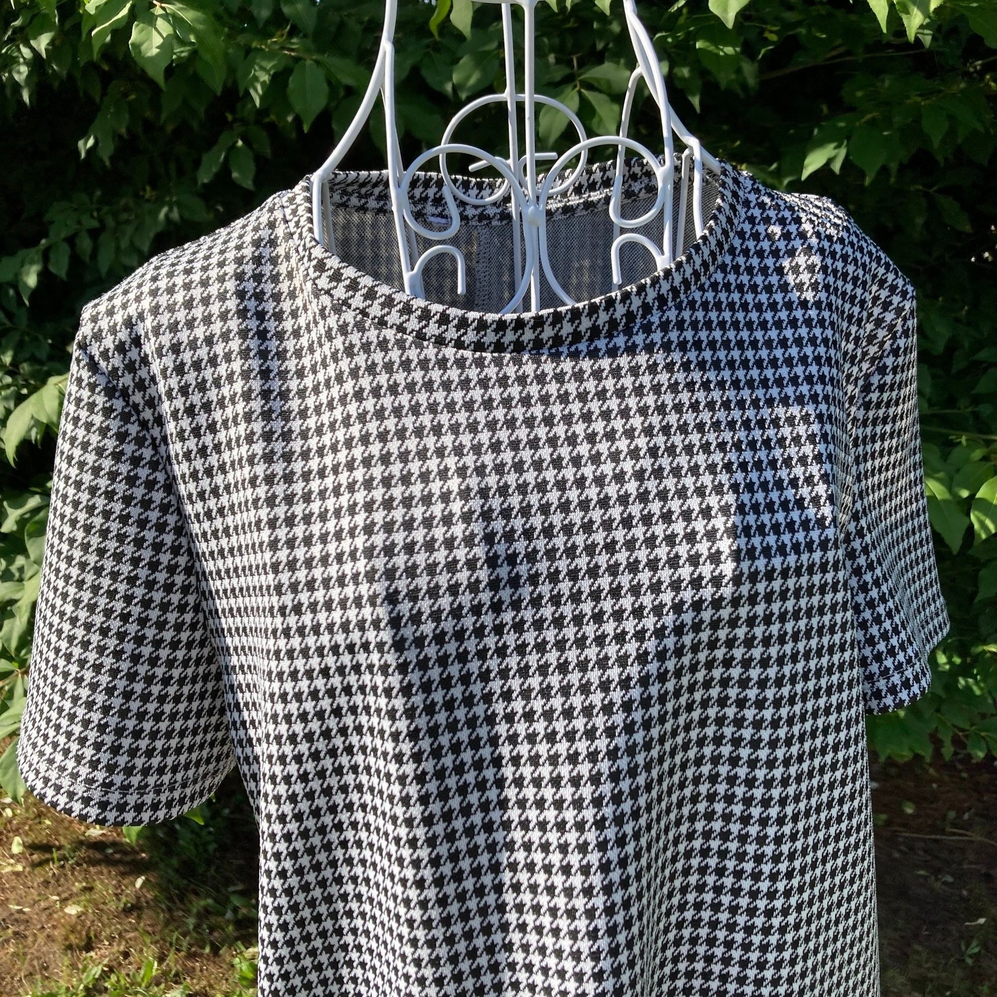 Vintage 70s dress 1970s houndstooth |S-M| black white shift