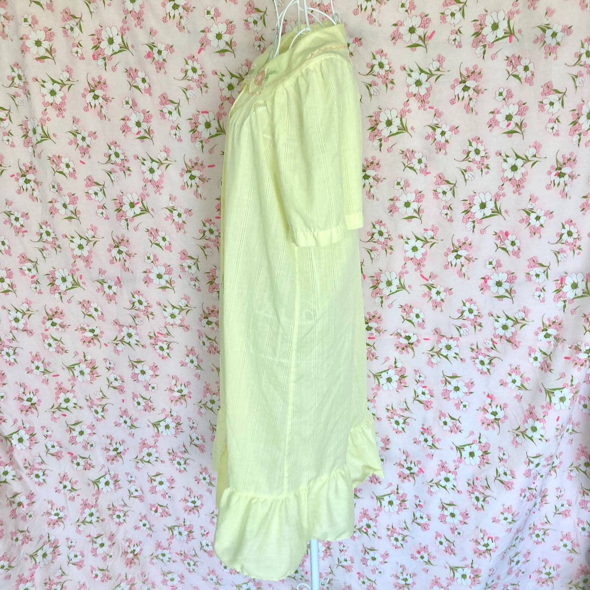 Vintage 70s house dress |S-M|pastel butter yellow short sleeve floral embroidered 1970s retro Katz