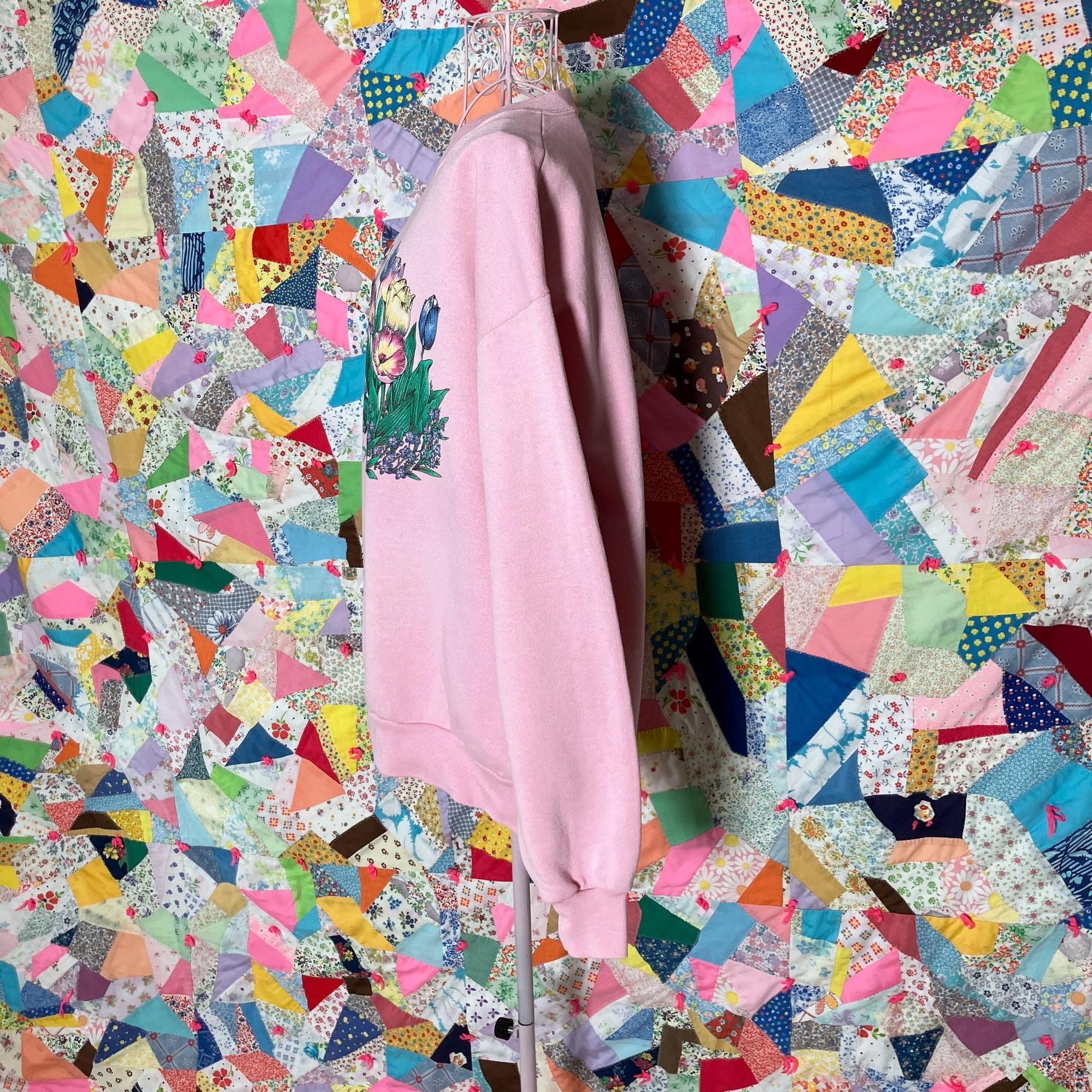 Vintage 80s 90s grandma sweatshirt pastel pink floral |S-M| flaws as is collared 1980s tulips Jerzees yellow blue white spring