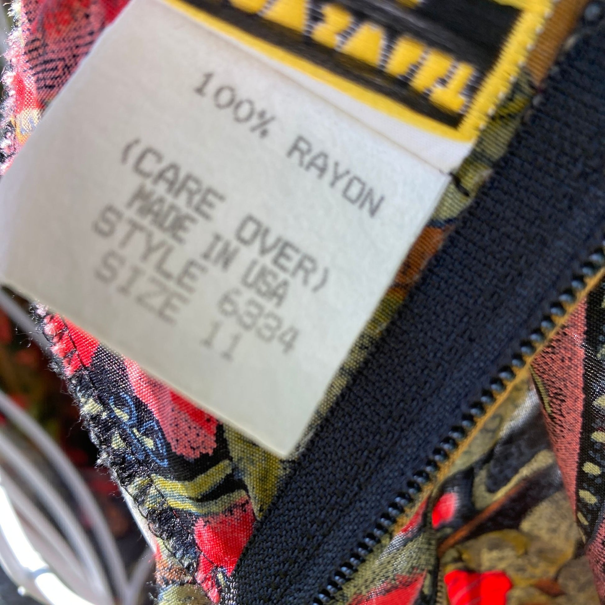 vintage 80s dress green red pink paisley floral print | S-M | dark floral How Sweet It Is belted