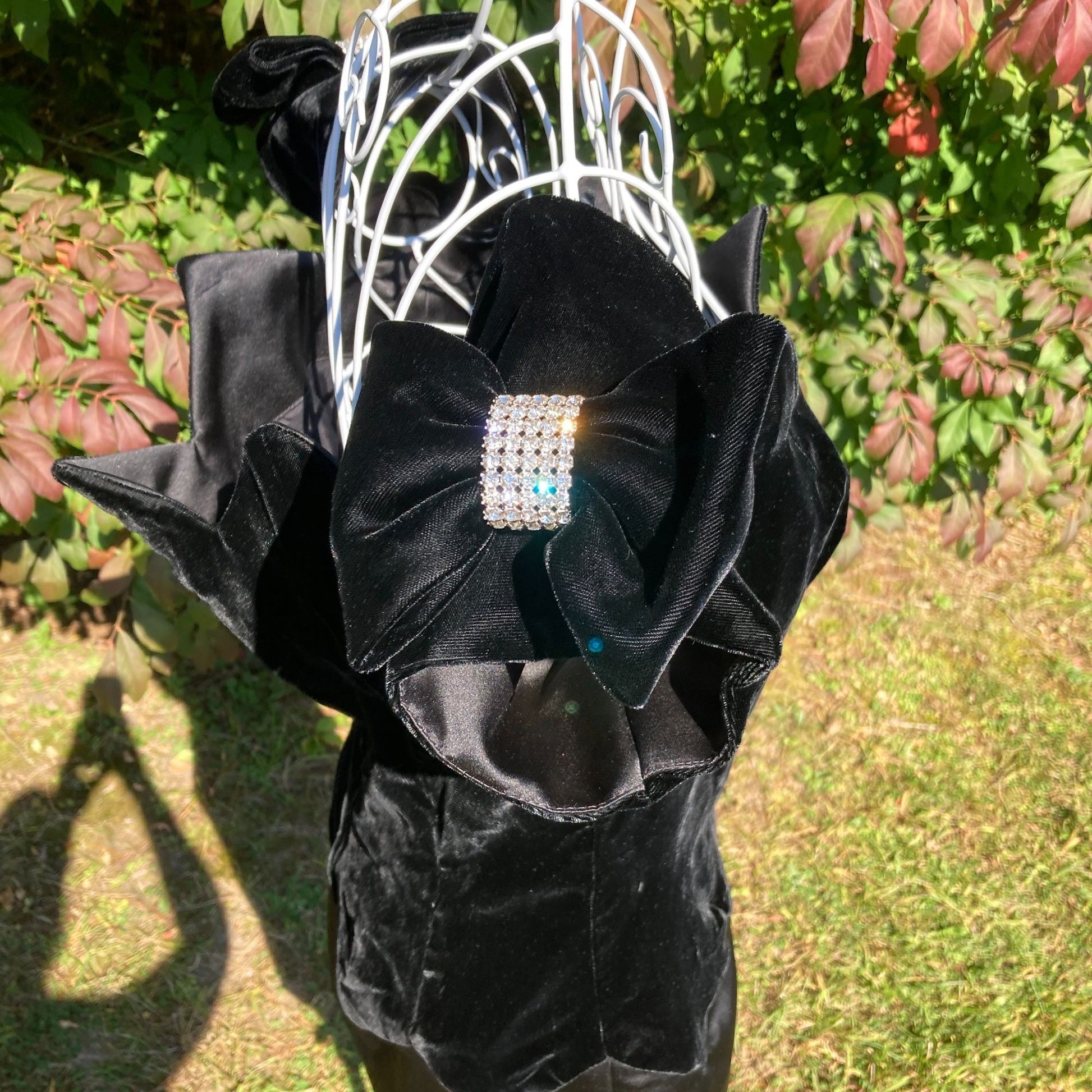 Vintage 80s dress Saks Fifth Avenue velvet black 1980s bow ILGWU union made satin Evenings by Raul Blanco