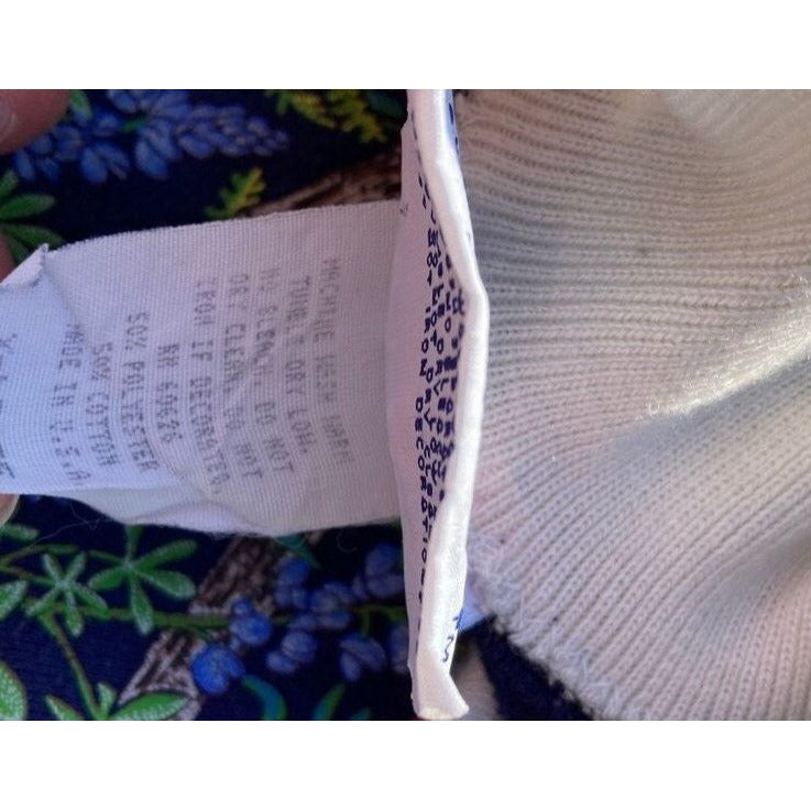 Vintage 80s grandma sweatshirt cottage Morning Sun navy blue floral |M-L| collared 1980s wheel wildflower cattails country