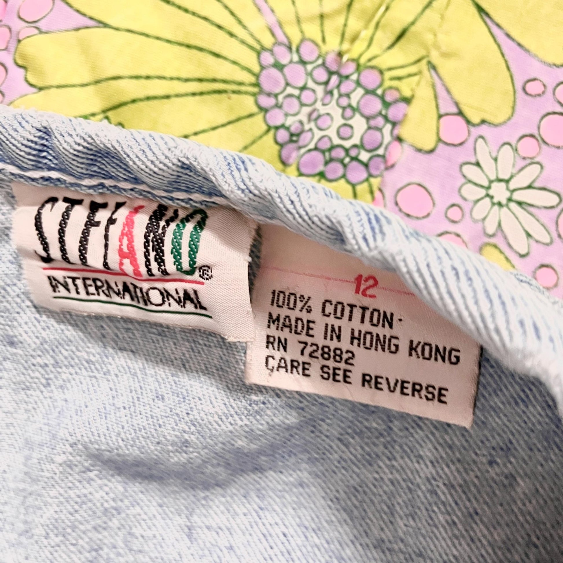 Vintage 90s shorts. Super soft 100% cotton, high waisted, lovely light wash with a cute embroidered trim on the leg openings and fly, no back pockets, and pleats. Would fit best a S-M, but please check the measurements to ensure a perfect fit. Small light discoloration, please see the photo. Made in Hong Kong, brand is Stefano, and original size is a 12. Here to help if you have any questions. Freshly laundered.