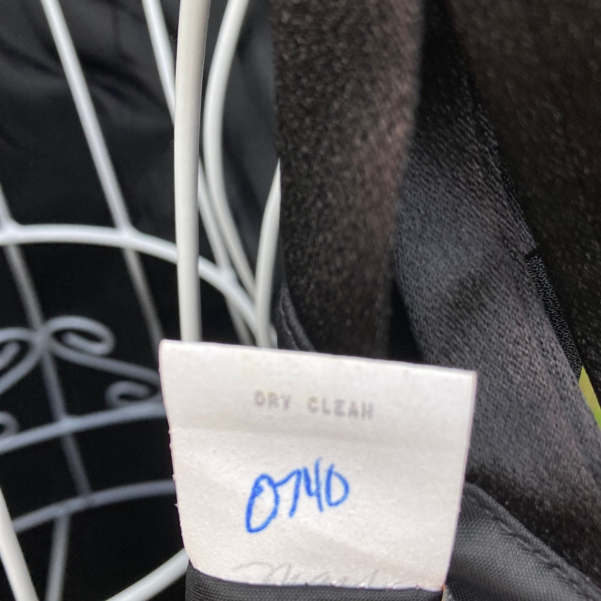 10, made in USA, and material is acetate and rayon. Would best fit a S - M, but please see the measurements to ensure a perfect fit. Here to help if you have any questions. Freshly laundered. Lined.