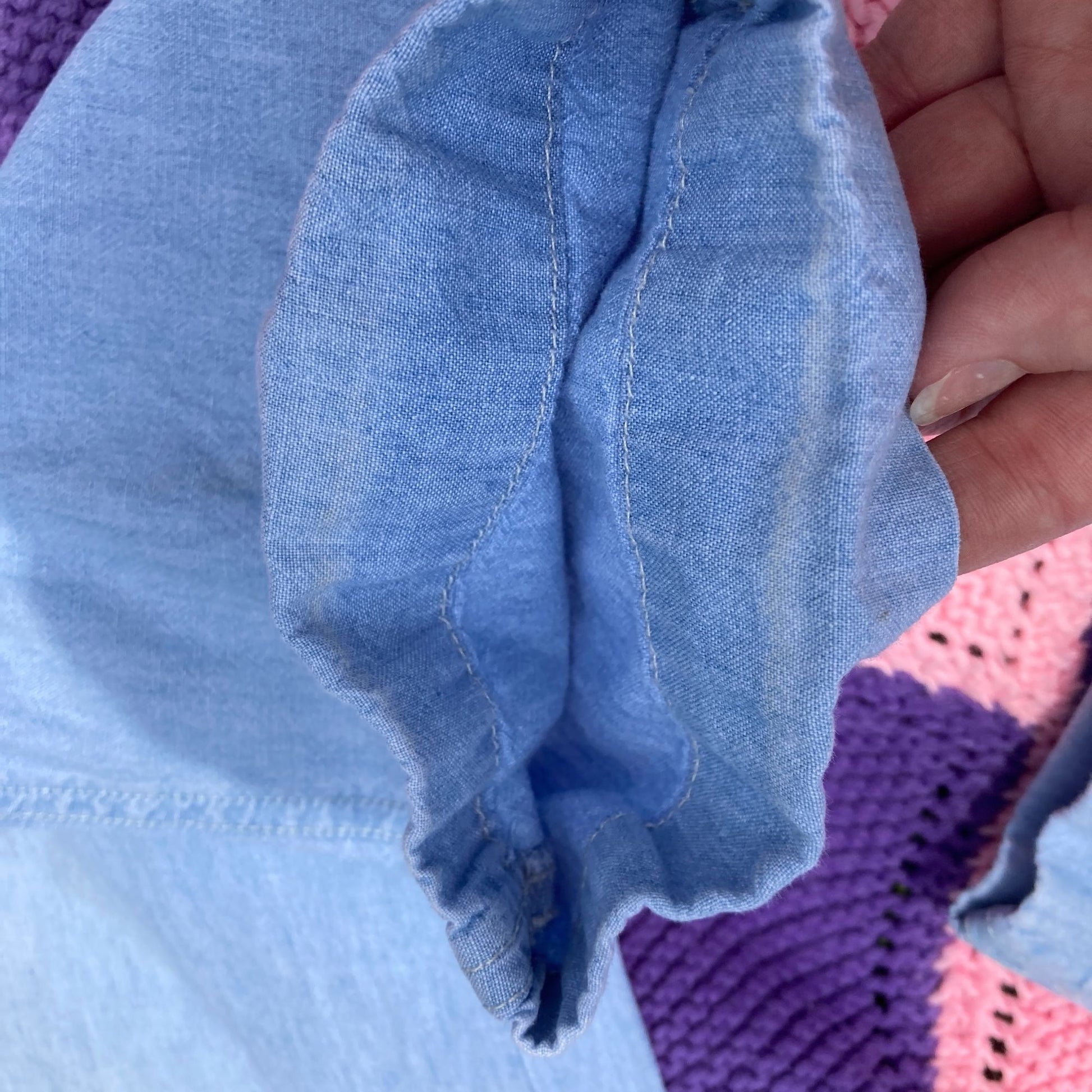 Vintage 90s chambray jean trouser pants. Cuffed at the leg opening . Tapered leg , high waisted with pleated details. Some discoloration along the cuffs and initials written on the inner waist band, please see the photos. Would best fit a S-M, but please see the measurements below to ensure a perfect fit. Front pockets and single back pocket. Brand is Liz Claiborne, original size is a 12, and material is 100% cotton. Freshly laundered. Here to help if you have any questions.
