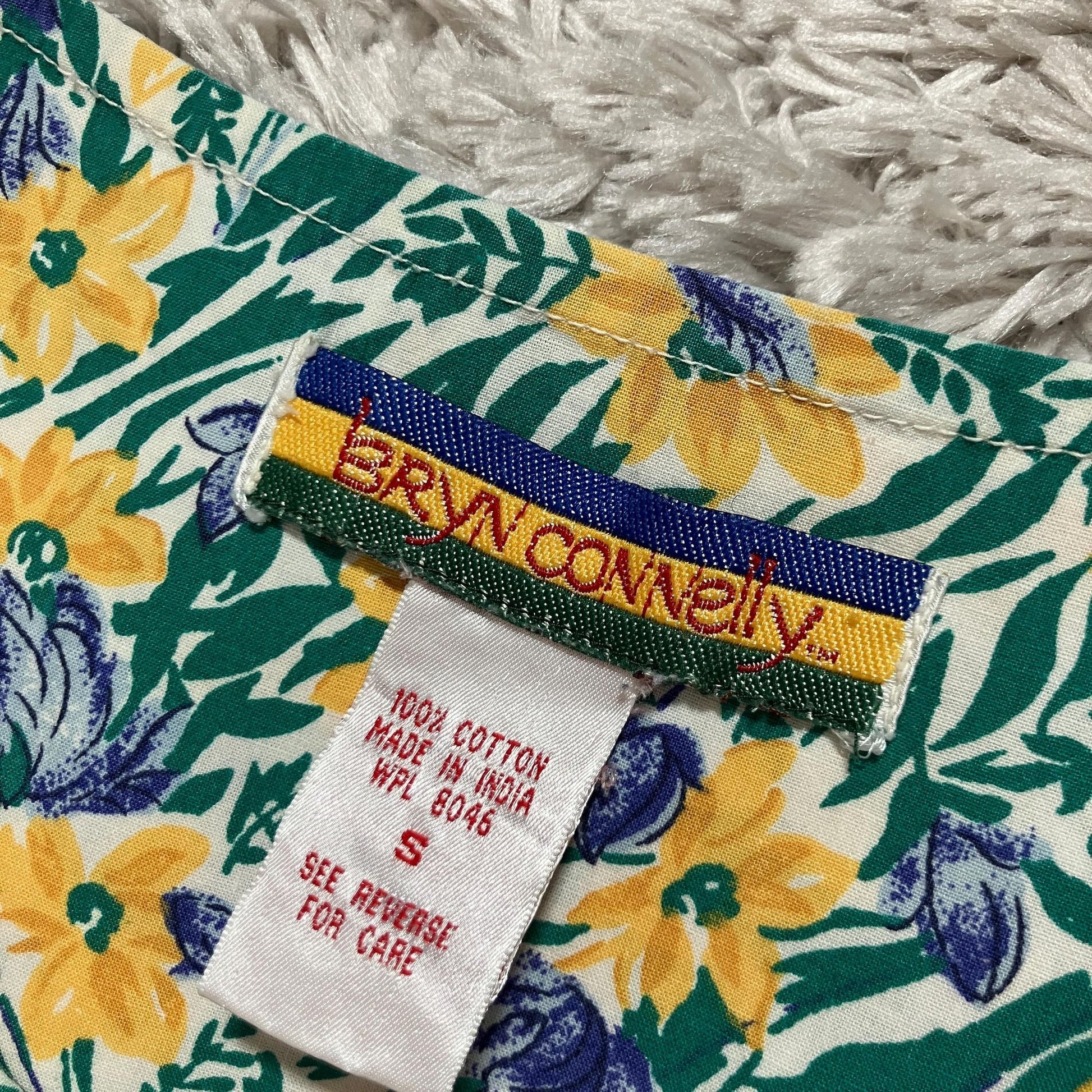 vintage 90s dress floral | S - M | Bryn Connelly blue green white floral french country