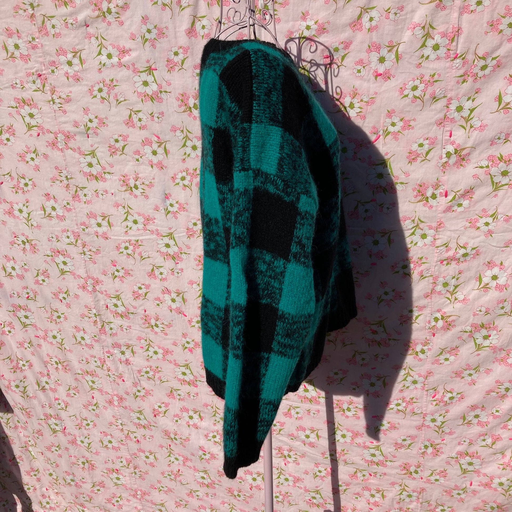 Vintage 90s sweater checkerboard check 1990s teal black buffalo plaid wool gap