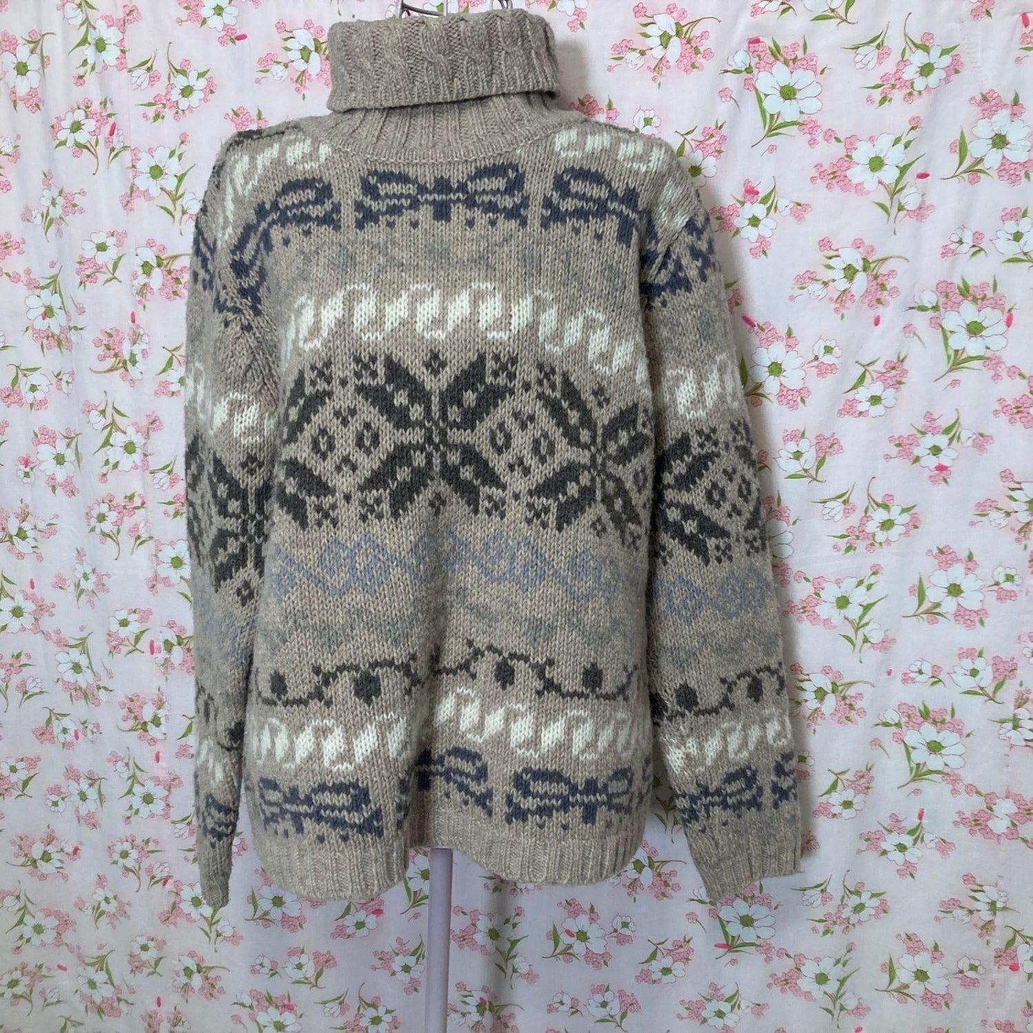 Vintage 90s sweater Talbots S-M wool tan white grey fair isle 1990s chunky turtleneck