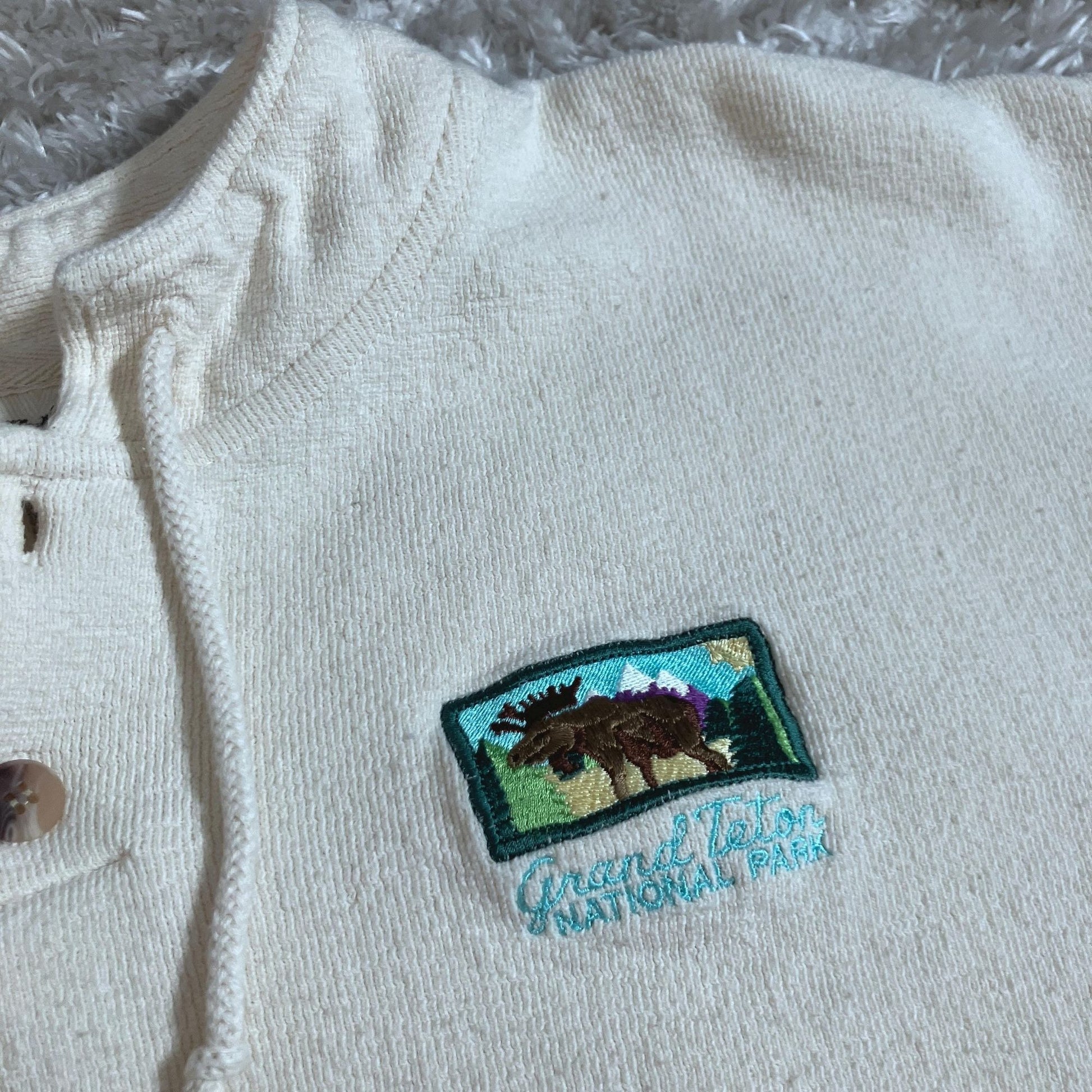 Vintage 90s sweatshirt Grand Teton | M - L | destination oat embroidered moose cotton quarter button up WORKS