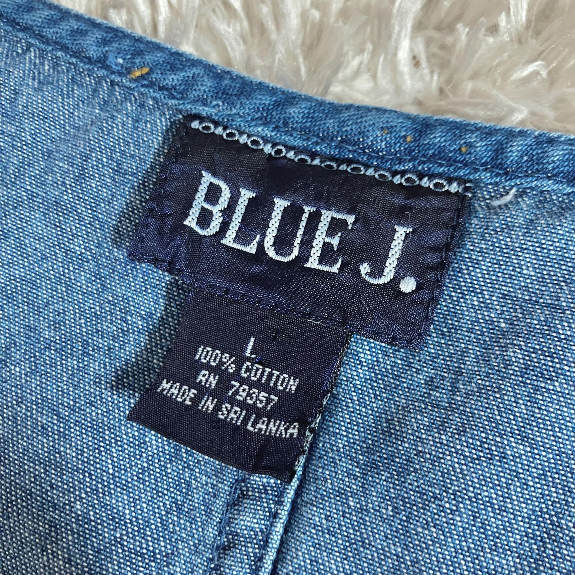 Scoop neckline, sleeveless, front patch velcro closure pockets, back slit, button front closure, and a jumper shift silhouette. Would best fit a L, but please see the measurements to ensure a perfect fit. Original size is a L, and brand is Blue J. .