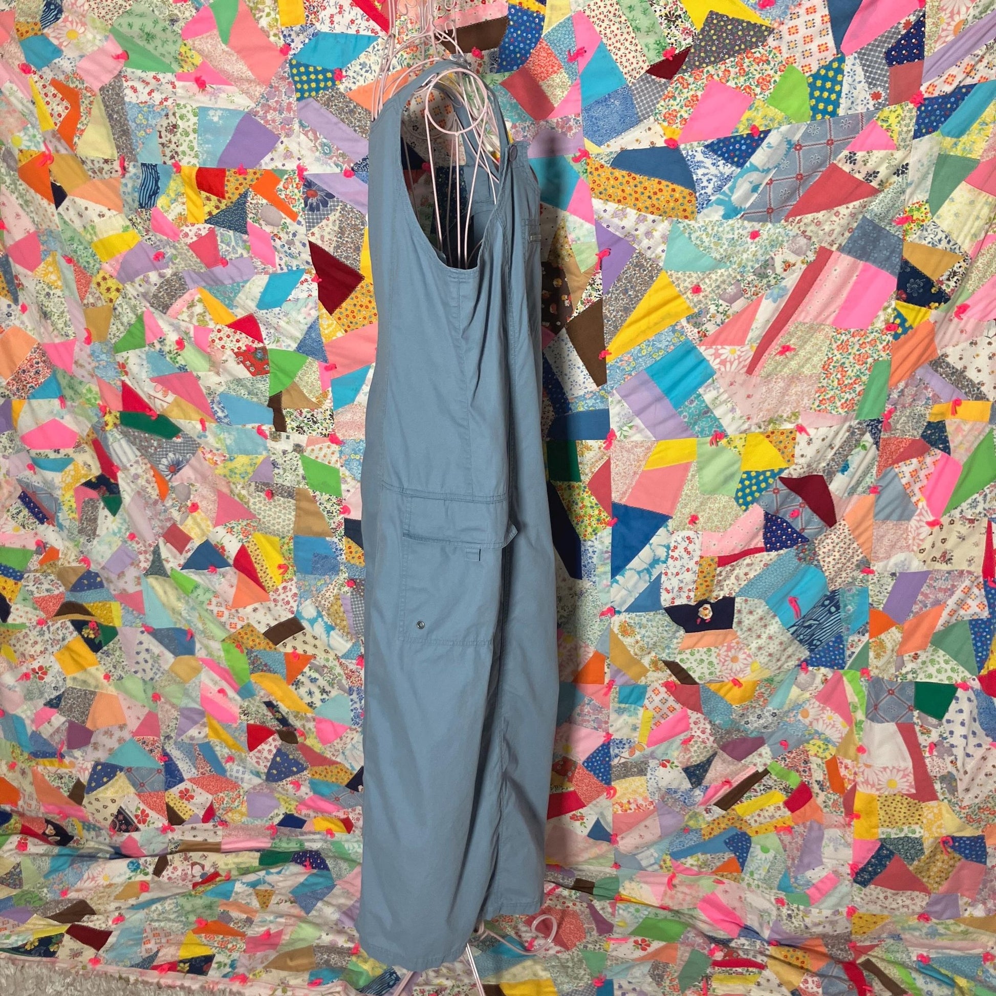 90s y2k maxi cottage core dress. 100% cotton light blue khaki material . So cute. Overall type button straps, but they are not adjustable. Zip front pocket and side cargo pockets.