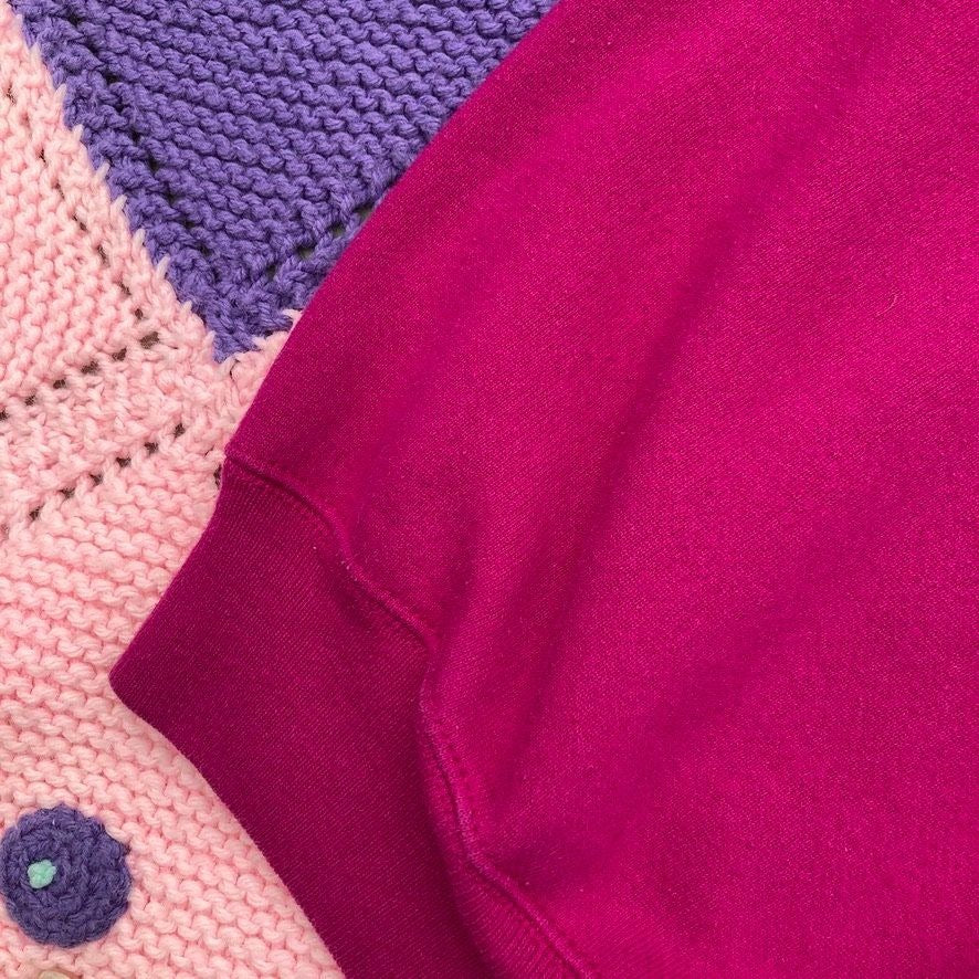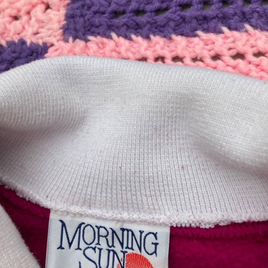 Floral and hummingbird print bright pink 90s grandma sweater. Screenprint graphic of a hummingbird around pink and white fuchsia flowers. Crew neckline with an inset white collar. Decade is 90s . Brand is Morning Sun and Coldwater Creek, illustrator is Whitton, tag size is an XL, made in the usa and material is a polyester and cotton blend . Would fit best a S – L, but please see the measurements to ensure a perfect fit. Some light pilling and crackling to the graphic,please see the photos. Here to help if you have any questions. Freshly laundered.